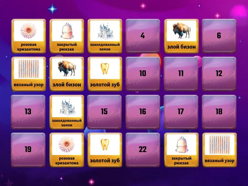 золотой зуб, заколдованный замок, вязаный узор, закрытый рюкзак, розовая хризантема, злой бизон, знаменитый музыкант, закрытая изба, грузовой поезд, забавный призрак, знакомое название, звонкий дрозд,