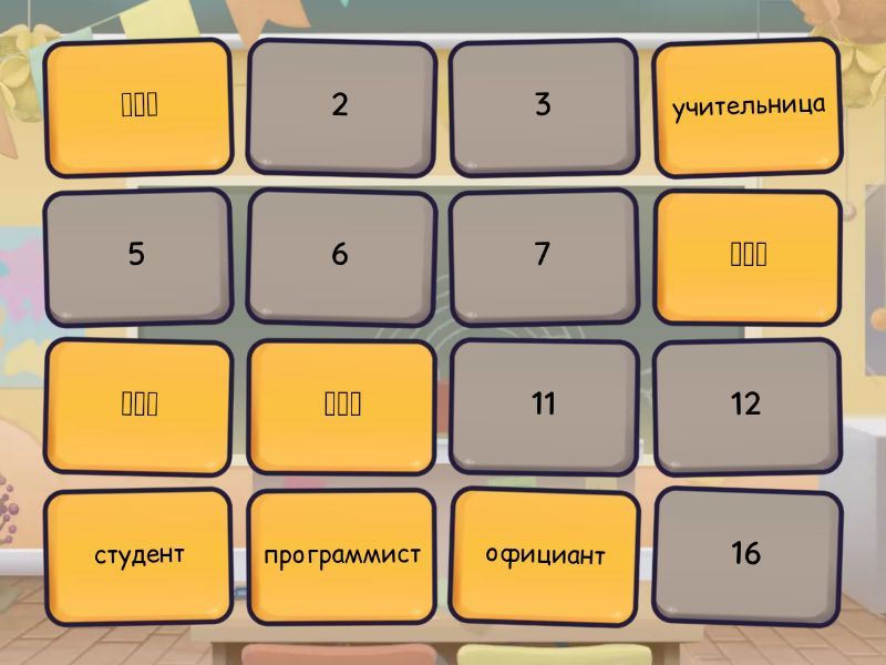 программист - 程序员, учительница - 女老师, студент - 大学生, официант - 服务员, инжинер - 工程师, врач - 医生, дизайнер - 设计师, менеджер - 经理,