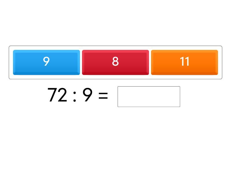 72 : 9 = ____ 54 : 6 = ____ ____ : 4 = 6 35 : 5 = ____ 12 : ____ = 4 81 : 9 = ____ ____ : 7 = 7 15 : 5 = ____ 90 : ____ = 10 64 : 8 = ____ ____ : 3 = 9 42 : 6 = ____ 36 : ____ = 4 48 : 8 = ____ ____ : 8 = 3 63 : ____ = 9 6 : 2 = ____ ____ : 3 = 6 25 : 5 = ____ 45 : ____ = 9