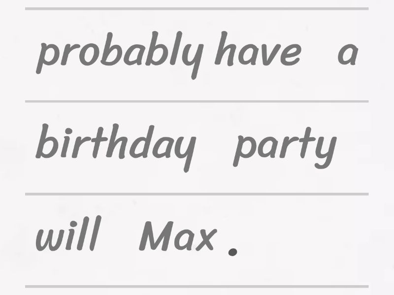 Max will probably have a birthday party., I probably won't go to football practice this afternoon., This computer definitely won't work with that cable., I might check my emails later., We will definitely spend Christmas at home this year., It might rain this afternoon., Perhaps we should wait until it stops raining to leave., It's possible that I will stop by the party later.,