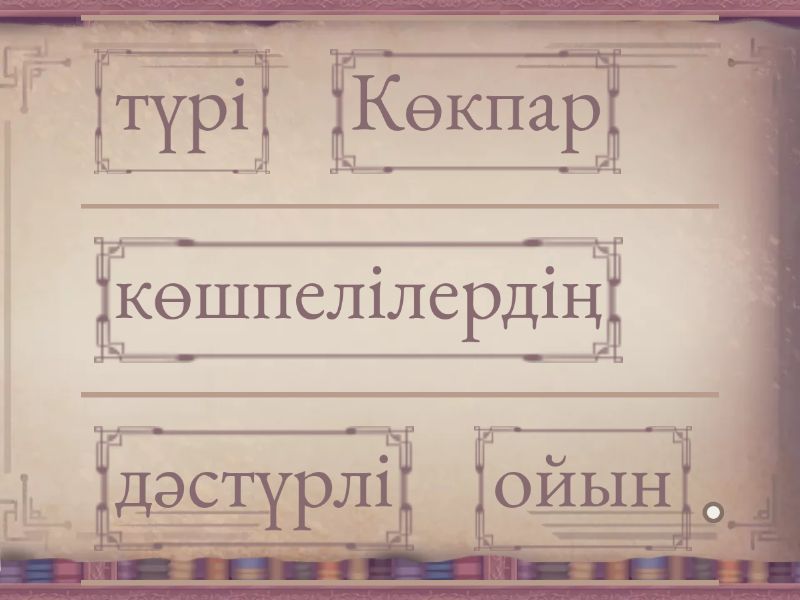 Көкпар көшпелілердің дәстүрлі ойын түрі., Саятшылық – жыртқыш құстарды қолға үйретіп аңға салу., Көшпелілер қайтыс болған адамның аруағын ерекше құрметтеген.,