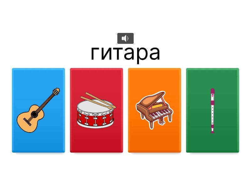 1) гитара a) b) c) d) 2) барабан a) b) c) d) 3) флейта a) b) c) d) 4) пианино a) b) c) d)