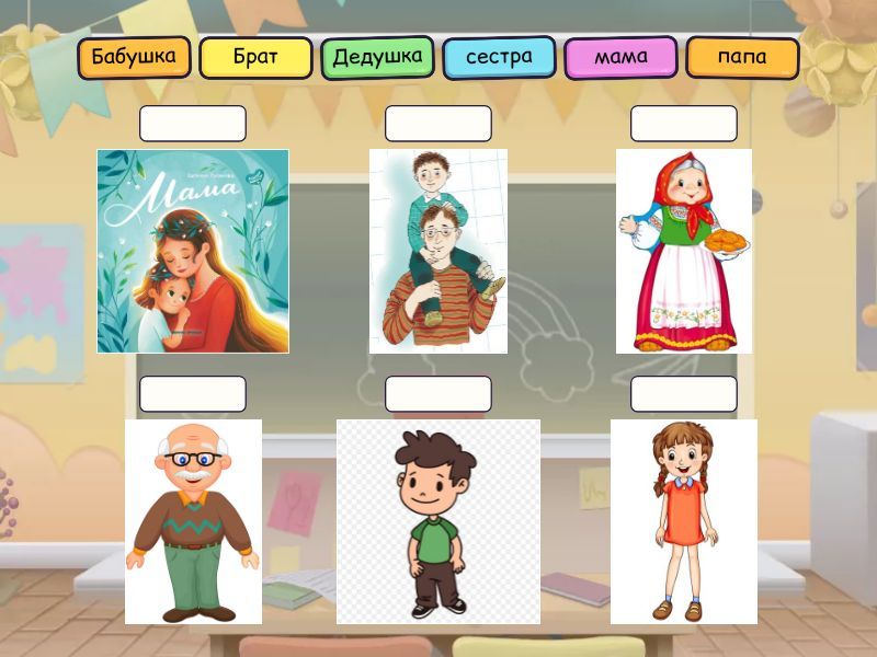 Дедушка, Бабушка, Брат, сестра, мама, папа,