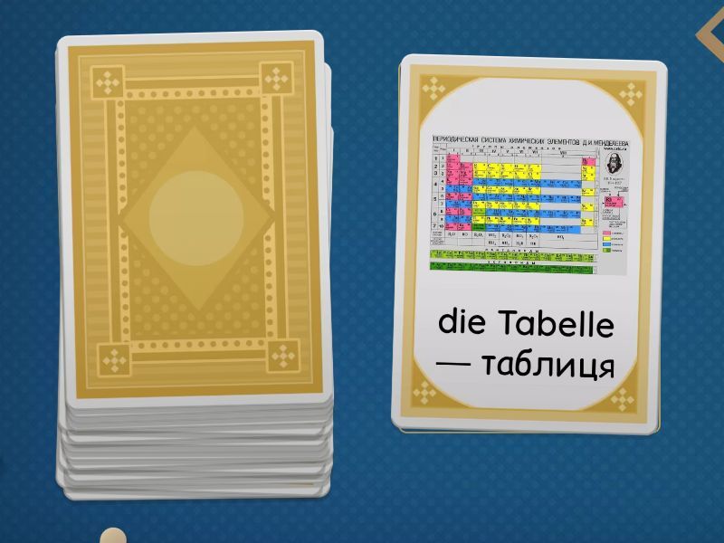 der Tisch — стіл, der Schrank — шафа, die Uhr — годинник, das Bild — картина, die Tabelle — таблиця, die Schulbank — парта, die Tafel - дошка , der Stuhl - стілець , braun , grau, blau, gelb, rot, schwarz, weiß, grün.
