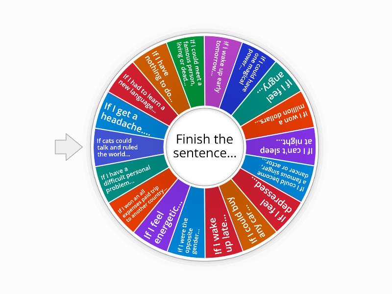 If I get a headache...., If I had to learn a new language..., If I have nothing to do..., If I could meet a famous person, living or dead..., If I wake up early tomorrow..., If I could have one magical power..., If I feel angry..., If I won a million dollars..., If I can't sleep at night..., If I could become a famous singer, dancer or actor..., If I feel depressed..., If I could buy any car..., If I wake up late..., If I were the opposite gender..., If I feel energetic..., If I won an all expenses paid trip to another country..., If I have a difficult personal problem..., If cats could talk and ruled the world....