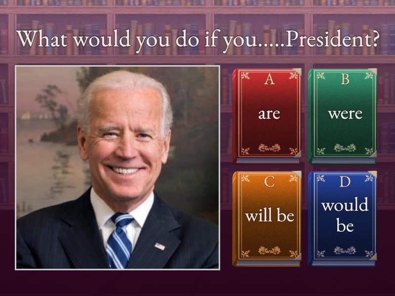 1) What would you do if you.....President? a) are b) were c) will be d) would be 2) If public transport .....free, less people would use their cars. a) is b) are c) were d) would be 3) If you.....rich, what car would you have? a) are b) will be c) would be d) were 4) If your boss .....you to work all weekend, what would you say? a) asks b) asked c) would ask d) will ask 5) I....more exercise if I were you. a) take b) took c) would took d) would take 6) I.....to him if I were you. a) don't listen b) didn't listen c) wouldn't listen d) won't listen 7) I .... that, if I were in your shoes. a) didn't do b) wouldn't do c) won't do d) don't do 8) If my company asked me to move to another country, I......... . a) refused b) refuse c) will refuse d) would refuse