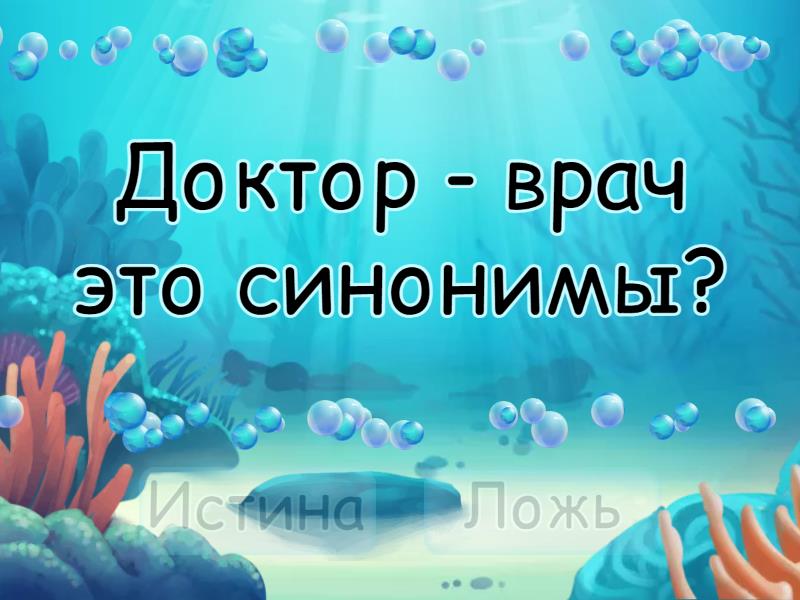 Истина: Доктор - врач это синонимы?, Быстро - медленно это антонимы?, Ручка - ручка это омонимы?, День - ночь это антонимы? , Недруг - враг это синонимы? , Ложь: Красный - алый это антонимы?, Старый - новый это синонимы?, Веселый - грустный это синонимы?,