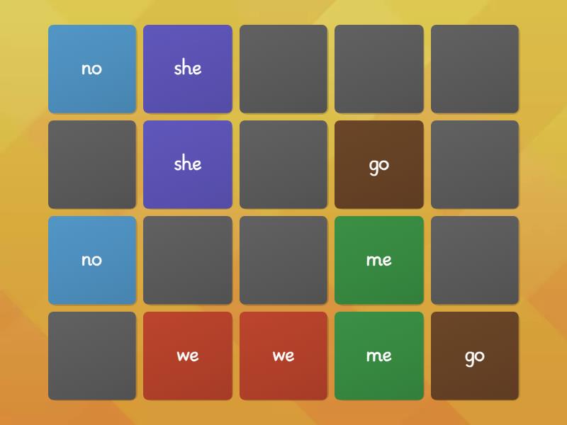 me, she, we, no, go, so, by, my, here, there,