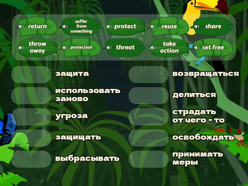 throw away - выбрасывать, threat - угроза, take action - принимать меры, suffer from something - страдать от чего - то, share - делиться, set free - освобождать, reuse - использовать заново, protect - защищать, protection - защита, return - возвращаться,