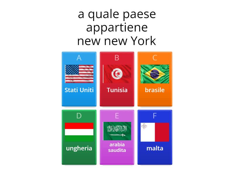 1) a quale paese appartiene new new York a) Stati Uniti  b) Tunisia c) brasile d) ungheria e) arabia saudita f) malta 2) quale é l'inventore della Tesla a) nikola tesla b) Elon mask c) uomo sapiens d) cristiano Ronaldo  e) La capra f) il asino 3) Chi é il orso a) una persona b) un animale c) una casa d) un Bosco e) un albero f) un fiore 4) dove si trova "El jem" a) TUNISIA b) australia c) Argentina d) georgia