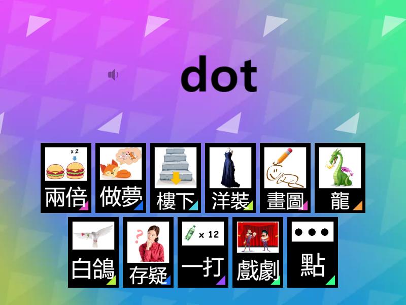 點, 兩倍, 存疑, 白鴿, 樓下, 一打, 龍, 戲劇, 畫圖, 做夢, 洋裝,