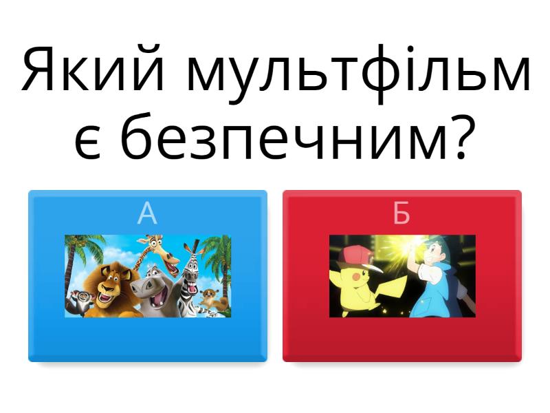 1) Який мультфільм є безпечним? a) b) 2) Який мультфільм є безпечним? a) b) 3) Який мультфільм є безпечним? a) b) 4) Який мультфільм є безпечним? a) b)