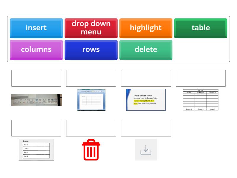 highlight , rows , columns , delete , drop down menu , insert , table ,