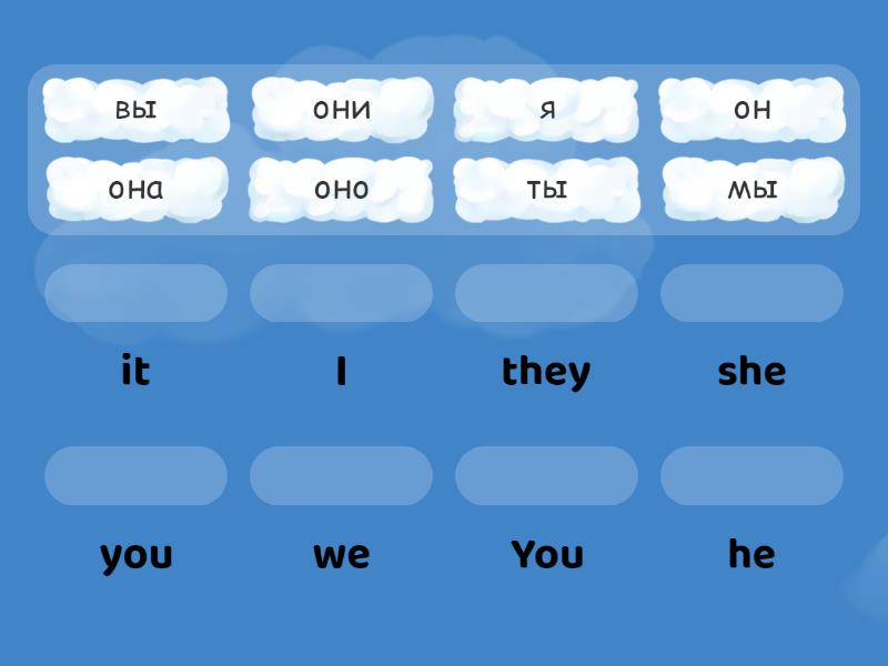 я - I, ты - you, мы - we, они - they, вы - You, он - he, она - she, оно - it,