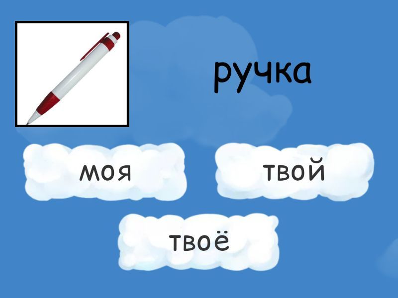 1) ручка a) моя b) твой c) твоё 2) карандаш a) моя b) твой c) мои 3) портфель a) моя b) его c) твоё 4) линейка a) её b) мои c) твой 5) книга a) мой b) твоя c) мои 6) ластик a) мой b) твоя c) твои 7) стул a) твои b) моё c) его 8) стол a) мои b) твой c) твоя 9) машина a) его b) мой c) твои 10) дядя a) твой b) твоя c) моя 11) сестра a) твои b) мой c) моя 12) ручки a) твоя b) твои c) моя 13) карандаши a) твоя b) мой c) мои 14) линейки a) моя b) твой c) его 15) компьютеры a) твой b) его c) твоя 16) молоко a) твоё b) моя c) твои 17) Яйцо a) моя b) твой c) её 18) Яблоко a) моя b) твой c) её 19) кафе a) мой b) твои c) его