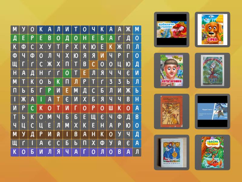 Дерево до неба , Кобиляча голова, Котигорошко, Молодильна вода, Мудрий Іванко, Калиточка, Телесик, Сірко,