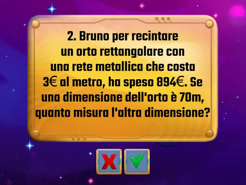1. Per raggiungere la casa dei nonni Matteo deve percorrere in bicicletta 6km. Se ha percorso 2/3 della strada, quanti km mancano?, 2. Bruno per recintare un orto rettangolare con una rete metallica che costa 3€ al metro, ha speso 894€. Se una dimensione dell'orto è 70m, quanto misura l'altra dimensione?,