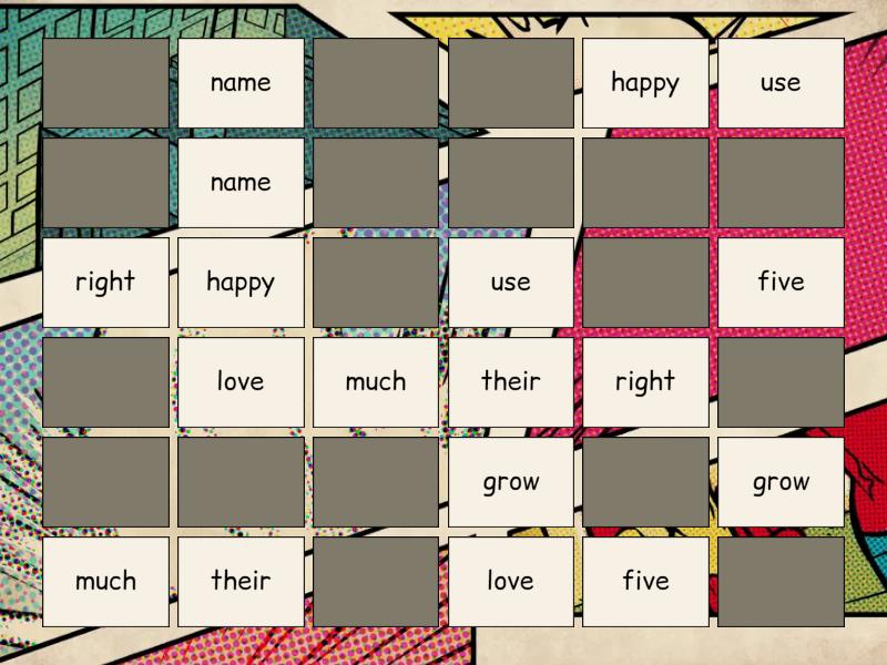 name, happy, five, much, grow, use, right, their, love, no, pretty, new, together, time, show, more, did, any,