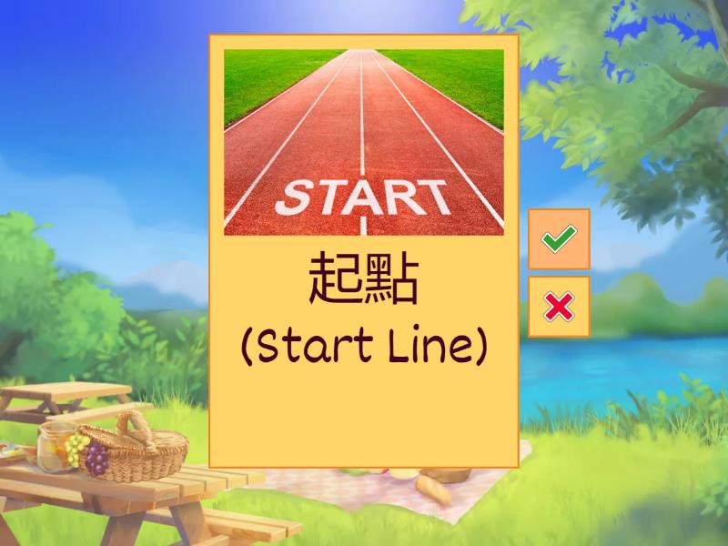 接力棒 (Baton) - 這是比賽中傳遞的物品。 The object passed between runners in the relay race., 起點 (Start Line) - 比賽開始的地方。 The place where the race begins., 終點 (Finish Line) - 比賽結束的地方。 The place where the race ends., 跑道 (Track) - 比賽進行的路線。 The path where the race takes place., 隊伍 (Team) - 一組比賽的選手。 A group of competitors racing together., 隊員 (Teammate) - 隊伍中的成員。 A member of the team., 傳遞 (Pass) - 將接力棒從一個人傳到另一個人。 To give the baton from one person to another., 交接區 (Exchange Zone) - 接力棒傳遞的特定區域。 The specific area where the baton is passed., 起跑 (Start Running) - 開始跑步。 To begin running., 加速 (Accelerate) - 跑得更快。 To run faster., 比賽 (Race) - 運動競賽。 A sports competition., 勝利 (Victory) - 贏得比賽。 Winning the race.,