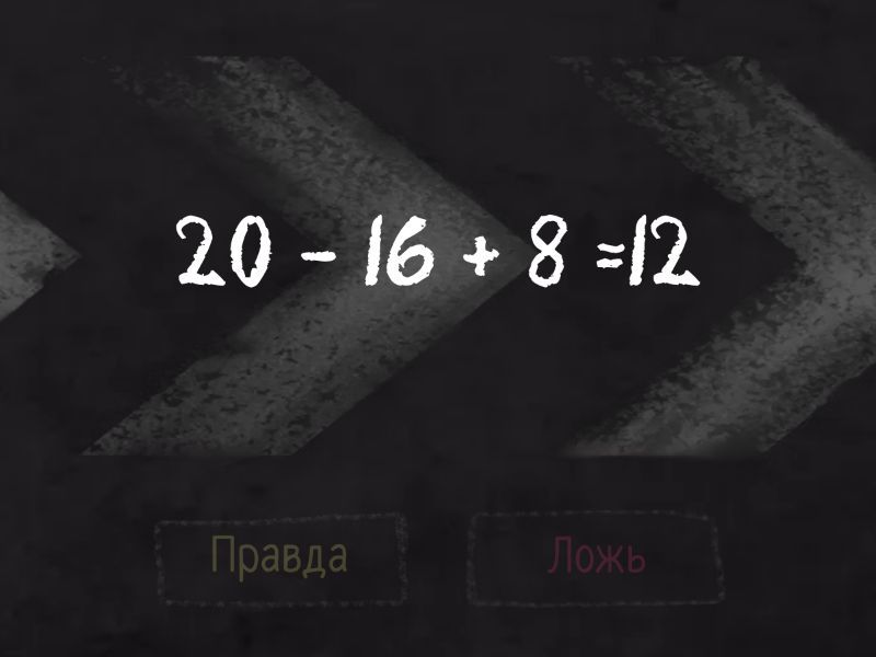Правда: 20 - 16 + 8 =12, 14 - 8 + 7 =13, 73 - 4 + 8 = 77, 58 - 9 + 2 = 51, Ложь: 5 + 8 + 6 = 20, 34 - 5 + 3 = 31, 11 - 7 + 8 = 13, 42 - 5 + 8 = 44,