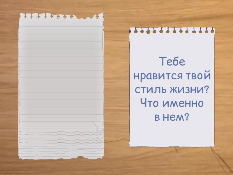 Ты живешь в большом городе? Что в нем интересного? , У тебя трудная работа? Что тебе в ней нравится? , Тебе нравится твой стиль жизни? Что именно в нем?, Тебе нравится активный или пассивный отдых? Приведи примеры, Каким спортом ты занимаешься? Каким бы хотел заниматься? , Ты любишь читать? Например, что? , Что ты сегодня делал? Что не успел? , Что тебе Не нравится в твоем районе?, Что ты хочешь научиться делать? Что хочешь попробовать? , Как ты узнаешь новости?, Как ты отметил свой прошлый день рождения? , Где, как и с кем ты провел последний отпуск? .