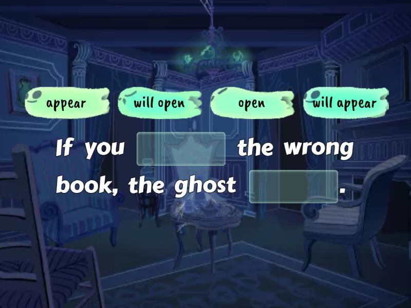 If you ____ the wrong book, the ghost ____. You ____ the key if you ____ the candle. Correct Answer: will find, light