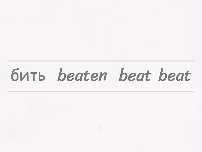 beat beat beaten  бить, eat ate eaten кушать, fall fell fallen падать, give gave given давать, forgive forgave forgiven прощать, bid bade bidden предлагать(цену на аукционе), forbid forbad forbidden запрещать, show showed shown показывать, sew sewed sewn шить, mow mowed mown косить(газон), sow sowed sown сеять, shave shaved shaven бриться,