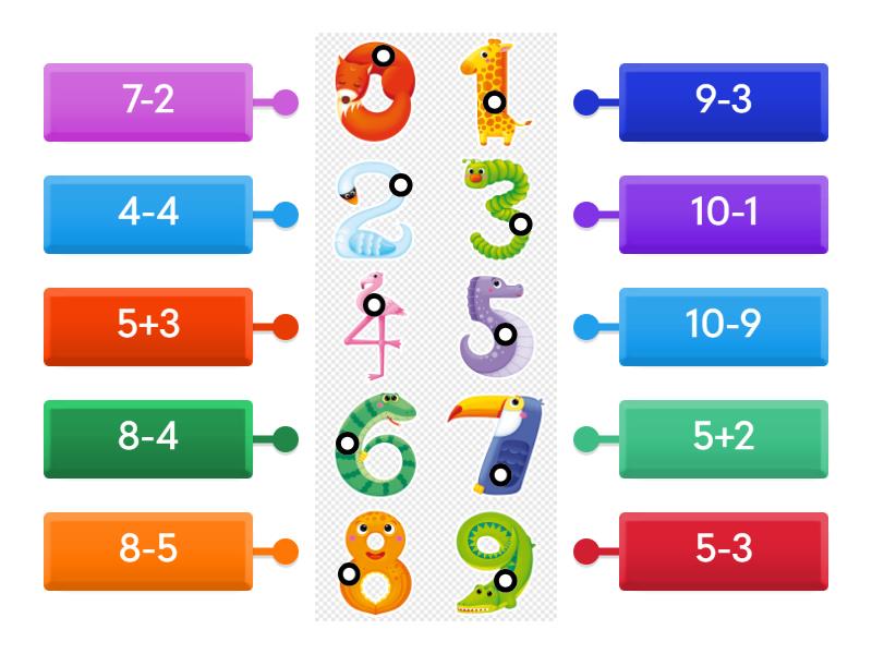 10-9, 5-3, 8-5, 8-4, 7-2, 9-3, 5+2, 5+3, 10-1, 4-4.