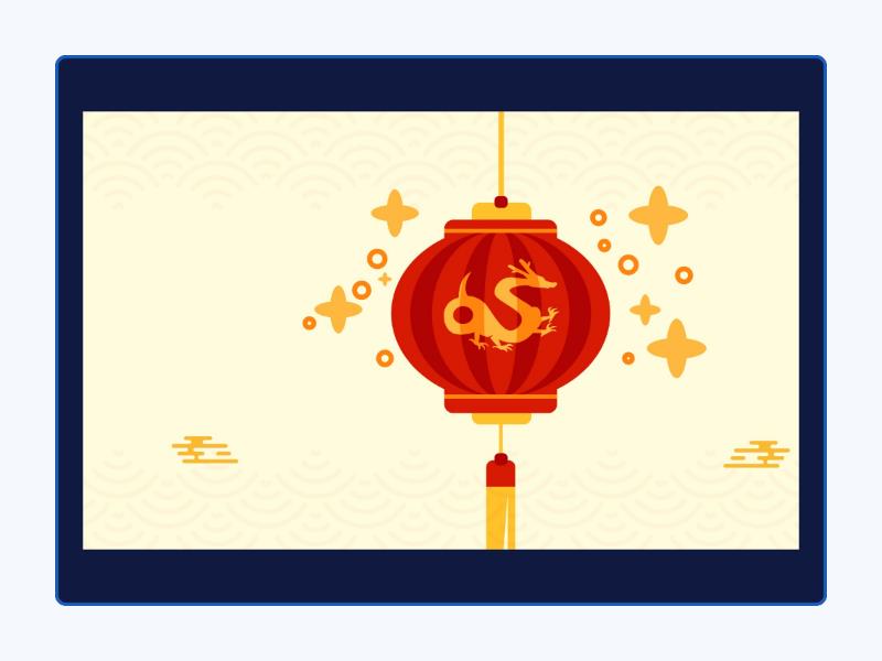 红包 hóngbāo, 灯笼 dēnglong, 龙 lóng, 鞭炮 biānpào,