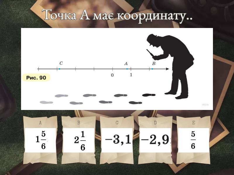 1) Точка А має координату.. a) b) c) d) e) 2) Точка В має координату.. a) b) c) d) e) 3) Точка С має координату.. a) b) c) d) e)