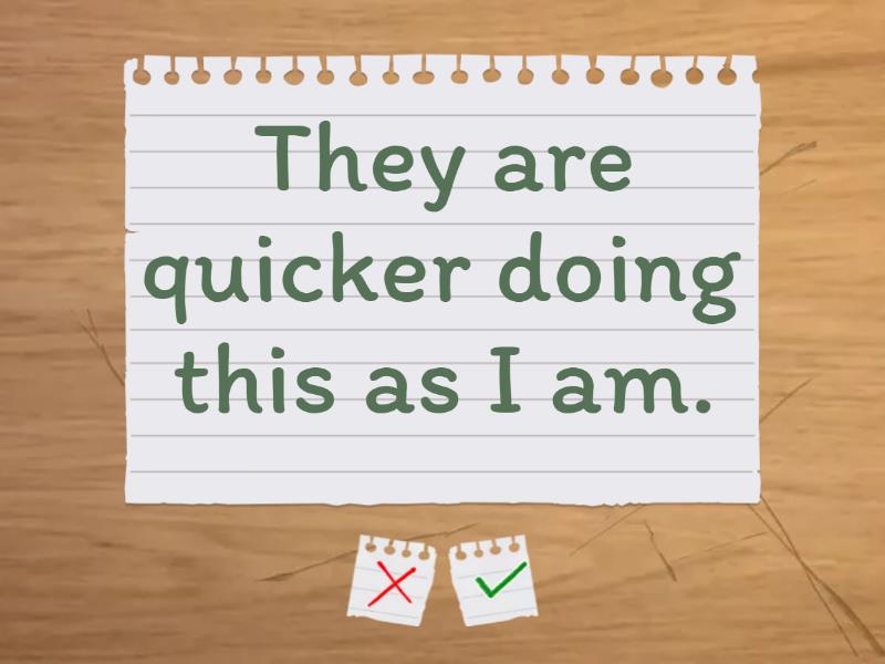They are quicker doing this as I am. - They are quicker at doing this than I am., I got there more earlier than everyone else. - I got there earlier than everyone else., They finished the test much quickly than me. - They finished the test much more quickly than me., I ate pretty the same much as the las time I went to his restaurant. - I ate pretty much the same as the last time I went to his restaurant., The longer I sit here, less I feel like moving. - The longer I sit here, the less I feel like moving., I prefer Tarantino's films than Oliver Stone's. - I prefer Tarantino's films to Oliver Stone's., He ran as the wind. - He ran as fast as the wind., He has worked like a taxi driver for most of his life. - He has worked as a taxi driver for most of his life., They seemed as they didn't really understand what was going on. - They seemed as if they didn't really understand what was going on., I think this novel is far the best he has written. - I think this novel is by far the best he has written.,