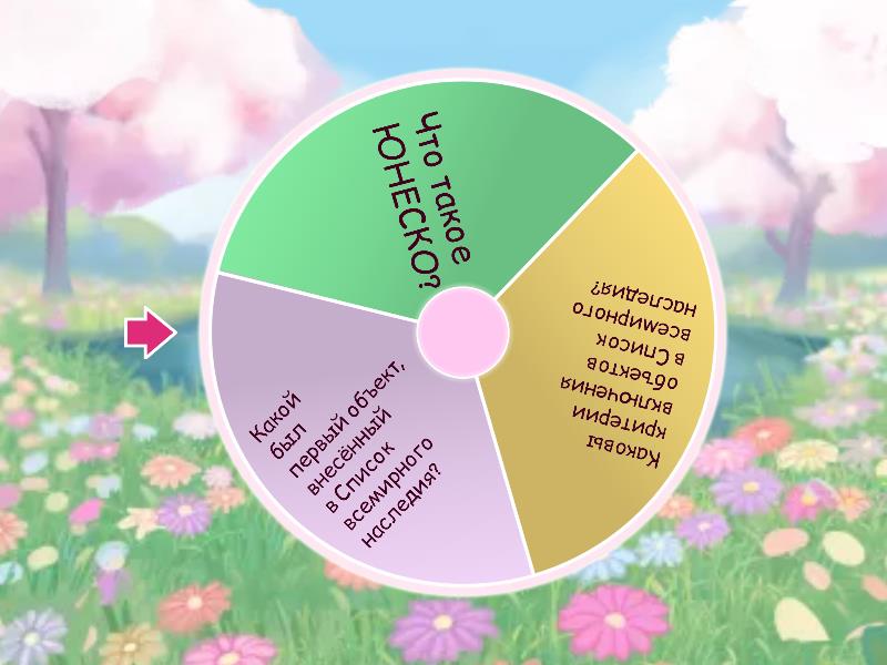 1) Что такое ЮНЕСКО? a) Памятник в Белоруссии  b) Организация ООН c) Юрта в Казахстане 2) Каковы критерии включения объектов в Список всемирного наследия? a) если он обладает выдающейся универсальной ценностью и соответствует хотя бы одному из десяти критериев b) если объект создан человеком c) По приказу Генерала Гавса 3) Какой был первый объект, внесённый в Список всемирного наследия? a) Национальный парк Йеллоустон (США) b) Памятник Бульбы (Беларусь) c) Галапагосский архипелаг (Эквадор)