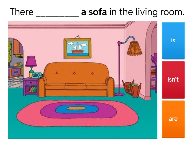 1) There _________ a sofa in the living room. a) is b) isn't c) are 2) There_______ four apples in the picture. a) aren't b) are c) is 3) There ______ a castle in Disneyland. a) are b) isn't c) is 4) _____________ trees in the park. a) There aren't b) There isn't c) There are 5) There _____two cats in the picture. a) aren't b) are c) is 6) There _______ four dogs in the picture. a) are b) is c) isn't 7) There ________ pencils in my pencil case. a) is b) isn't c) are 8) _______ six dogs in this picture. a) There aren't b) There are c) There is 9) There ______ two girls in this picture. a) is b) isn't c) are 10) _________ three monkeys in the zoo. a) There aren't b) There are c) No, there isn't. 11) __________ a board and a teacher. a) There is. b) There isn't. c) There are 12) There are two hamburgers in this picture. a) true b) false 13) There is a table in this picture. a) true b) false
