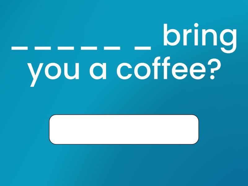 Do you ____ __ __ meet you at the airport?, ___ __ carry this for you., That's really ____ __ ___., That's a _____ ____ ., Thank you, but _'_ ____., _____ _ bring you a coffee?, That _____ __ great., _'__ get you something to eat., _ ___ help you to finish this task..