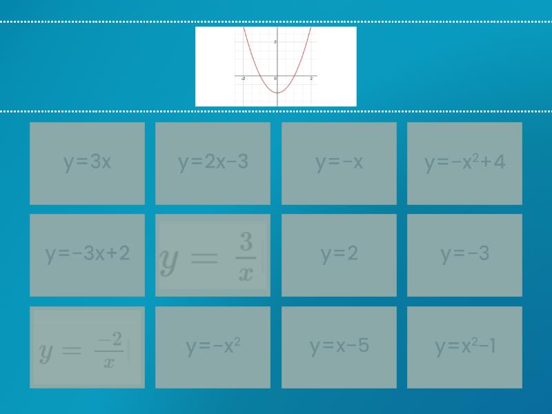 y=x2−1, y=2x−3, y=2, y=3x, y=−x, y=−x2, y=−3x+2, y=−x2+4, y=−3, y=x−5,