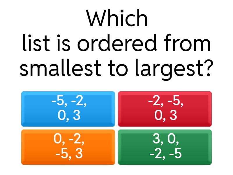 1) Which list is ordered from smallest to largest? a) -5, -2, 0, 3 b) -2, -5, 0, 3 c) 0, -2, -5, 3 d) 3, 0, -2, -5 2) What is the value of 4 squared (4²)? a) 8 b) 16 c) 4 d) 2 3) Which is a factor of 24? a) 5 b) 7 c) 8 d) 10 4) Which is a multiple of 6? a) 10 b) 15 c) 18 d) 25 5) What is the LCM of 4 and 6? a) 2 b) 10 c) 12 d) 24 6) What is the HCF of 12 and 18? a) 2 b) 3 c) 6 d) 36 7) Which number is a prime number? a) 4 b) 9 c) 15 d) 17 8) What is the square root of 49? a) 7 b) 24.5 c) 9.8 d) 98 9) Express 20 as a product of its prime factors. a) 2 x 10 b) 4 x 5 c) 2 x 2 x 5 d) 2² x 10 10) A thermometer shows -3°C. It rises by 5°C. New temperature? a) -8°C b) -2°C c) 2°C d) 8°C