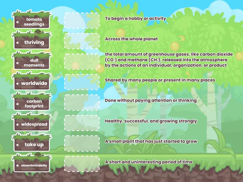mind-wandering - The act of imagining or thinking randomly when not focused, problem solving - The mental process of finding solutions, several - More than two but not many, groundbreaking inventions - New inventions that completely change how things are done, dull moments - A short and uninteresting period of time, absentmindedly - Done without paying attention or thinking, worldwide - Across the whole planet, rooftop - A surface at the top of a building, thriving - Healthy, successful, and growing strongly, take up - To begin a hobby or activity, carbon footprint - the total amount of greenhouse gases, like carbon dioxide (CO₂) and methane (CH₄), released into the atmosphere by the actions of an individual, organization, or product, widespread - Shared by many people or present in many places, tax reductions - Reduced payments made to the government, lead - A series of actions that cause something to happen, tomato seedlings - A small plant that has just started to grow, swapping recipes - To exchange cooking instructions with someone,
