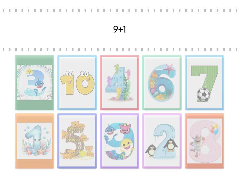 9+1, 2+2, 10-9, 8-5, 5-3, 2+3, 10-4, 6+2, 9-0, 8-1,