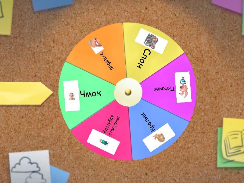 1) Улыбка 2) Слон 3) Пятачек 4) Кролик 5) Беззубая старушка 6) Чмок