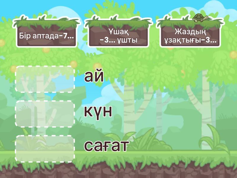 Бір аптада-7... - күн, Жаздың ұзақтығы-3... - ай , Ұшақ -3... ұшты - сағат,