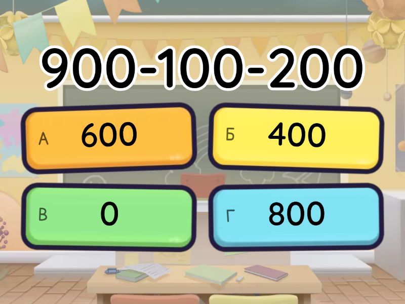 1) 200+100+500 a) 900 b) 0 c) 800 d) 400 2) 700-200-500 a) 900 b) 400 c) 100 d) 0 3) 800-200+300 a) 400 b) 900 c) 0 d) 800 4) 500+200-500 a) 0 b) 900 c) 800 d) 200 5) 900-100-200 a) 600 b) 400 c) 0 d) 800 6) 400+500-700 a) 900 b) 0 c) 600 d) 200