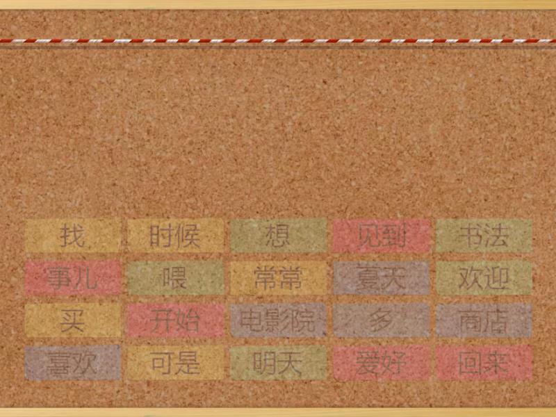 欢迎 - приветствовать, 回来 - возвращаться, 夏天 - лето, 时候 - время, 想 - скучать; хотеть, 见到 - лично увидеть, 多 - много, 可是 - но, 书法 - каллиграфия, 爱好 - хобби, 喜欢 - нравиться, 常常 - часто, 明天 - завтра, 事儿 - дело, 商店 - магазин, 买 - покупать, 喂 - алло, 开始 - начинать, 电影院 - кинотеатр, 找 - искать,