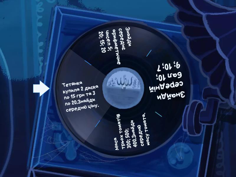Знайди середнє арифметичне чисел 5; 20; 15; 20, Знайди середній бал 10; 9; 10; 7, Маса трьох томатів 300; 500; 400.Знайди середню масу томата., Тетянка купила 2 диска по 15 грн та 3 по 20.Знайди середню ціну..