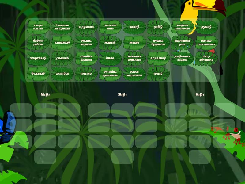 м.р.: плыў, хацеў, марыў, танцаваў, рабіў, смяяўся, будаваў, адказваў, думаў, жартаваў, ж.р.: хмара плыла, дзяўчынка хацела, Ульяна марыла, Святлана танцавала, бабуля рабіла, жанчына смяялася, пчолка будавала, вучаніца адказвала, я думала, Алеся жартавала, н.р.: плыло, жыло, ішло, замянілі акно, узышло, сонейка ўзышло, малако сапсавалася, праляцела рэха, змоўкла наваколле, лісце абляцела,