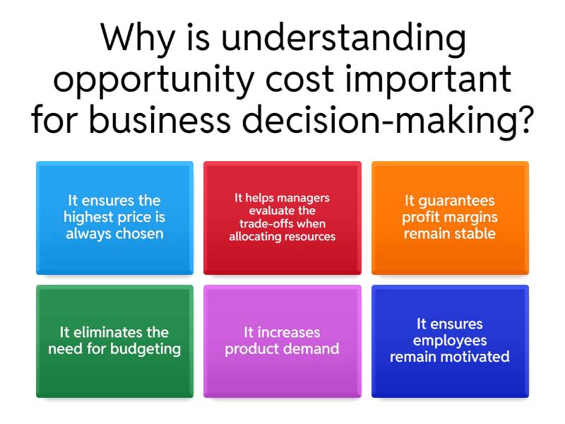 1) Why is understanding opportunity cost important for business decision-making? a) It ensures the highest price is always chosen b) It helps managers evaluate the trade-offs when allocating resources c) It guarantees profit margins remain stable d) It eliminates the need for budgeting e) It increases product demand f) It ensures employees remain motivated 2) What is the main risk of overtrading for a rapidly growing business? a) Falling prices in the market b) Increased employee turnover c) Insufficient working capital to support expansion d) Excessive reliance on customer feedback e) Too much government regulation f) Lack of new product development 3) Which leadership style is most effective when a business faces a crisis requiring quick decisions? a) Laissez-faire b) Autocratic c) Democratic d) Consultative e) Transformational f) Bureaucratic 4) Which of the following is an example of capital-intensive production? a) A restaurant using chefs to prepare meals b) An office hiring many customer service staff c) A car factory using automated robotics d) A farmer using manual tools e) A delivery firm hiring additional drivers f) A clothing store hiring models for advertising 5) Which factor would most likely influence a multinational company’s decision on location? a) Access to skilled labour b) Presence of local family-owned businesses c) Distance from global headquarters d) Cost of office furniture e) Availability of leisure facilities f) Number of local sports teams 6) Which of the following would most likely improve a business’s cash flow in the short term? a) Paying suppliers early b) Increasing inventory levels c) Selling underused assets d) Investing in R&D e) Expanding to a new market f) Increasing staff training budget 7) Why might a democratic leadership style slow down decision-making? a) It requires little feedback b) It excludes junior staff c) It involves employee consultation d) It uses written memos only e) It increases profits too fast f) It leads to role confusion 8) What does the Statement of Financial Position show? a) Only the revenue a company earned this year b) How much profit was made in the last quarter c) A snapshot of a business’s assets and liabilities d) A list of total monthly expenses e) The salaries of directors f) Customer feedback ratings 9) How can a business improve labour productivity? a) Reduce wages b) Invest in employee training and better tools c) Limit employee breaks d) Increase overtime without rest e) Hire more supervisors f) Restrict teamwork 10) Which of the following is a limitation of secondary research? a) It takes too long to collect b) It is always too expensive c) It may not be tailored to the business's needs d) It requires highly trained researchers e) It always includes competitor insights f) It avoids surveys and interviews 11) How does a tariff affect international trade? a) It eliminates all import restrictions b) It subsidises domestic industries c) It makes imported goods more expensive d) It promotes perfect competition e) It reduces export incentives f) It lowers productivity 12) What is meant by external economies of scale? a) Cost savings from internal departments b) Savings due to industry-wide improvements c) Decreased demand in a shrinking market d) Efficiency from hiring family members e) Savings from lower quality standards f) Reducing product variety 13) Why might a government support small businesses? a) To increase market monopolies b) To avoid technological advancement c) To promote employment and innovation d) To restrict competition e) To reduce global trade f) To raise unemployment 14) Which is a reason for choosing batch production? a) To produce unique, one-off items b) To simplify management c) To reduce waste while maintaining variety d) To limit worker specialisation e) To increase customisation for each customer f) To eliminate stock control 15) Why might a business conduct market segmentation? a) To lower product quality b) To target groups more effectively c) To raise raw material costs d) To design a generic marketing campaign e) To avoid meeting consumer needs f) To increase prices randomly 16) What is one likely reason for setting a price skimming strategy? a) To eliminate all competitors quickly b) To attract low-income customers c) To maximise revenue from early adopters d) To comply with government price controls e) To drive down demand f) To increase inventory turnover 17) Which function is typically associated with the Human Resources department? a) Managing production quality b) Analysing marketing data c) Recruiting and training staff d) Writing company blog posts e) Creating investment portfolios f) Developing new packaging machines 18) What does lean production aim to achieve? a) More layers of management b) Minimal waste and maximum efficiency c) Unlimited production costs d) Expensive outsourcing e) Constant stock build-up f) Slower response to demand 19) What is a trade union’s primary role? a) Promote managerial salaries b) Negotiate improved working conditions for employees c) Prevent industrial training d) Increase supplier power e) Handle profit distribution f) Organise team-building events 20) In which situation is decentralisation most useful? a) When strict control is needed b) In a small sole trader firm c) In large firms needing quicker local decisions d) In monopolies with uniform products e) When hiring new board members f) In centralised economies 21) What is the main reason a public limited company must publish its financial results? a) To encourage employee motivation b) To prevent competitors from copying products c) To comply with legal requirements and maintain transparency d) To promote customer loyalty e) To influence government policy f) To raise local awareness 22) How could inflation affect a business’s costs? a) It reduces utility expenses b) It lowers employee salaries c) It increases raw material and wage costs d) It leads to more investment in capital e) 