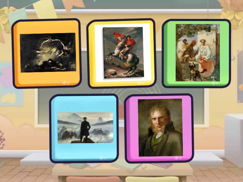 Жак-Луї Давід. Наполеон, що перетинає Сен-Бернар, Генрі Фюзелі. Сон пастуха, Каспар Давид Фрідріх. Мандрівник над морем туману, Каспар Давид Фрідріх, Тарас Шевченко. Ворожка,