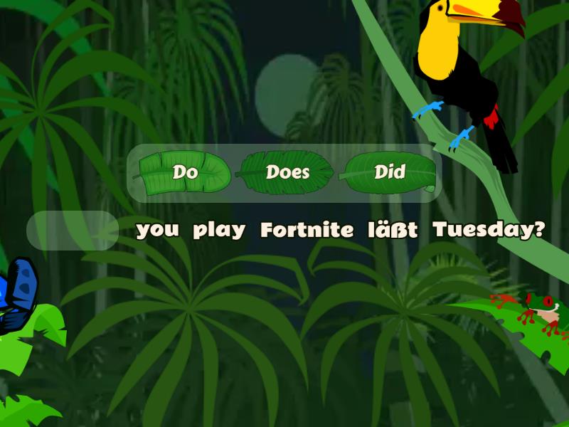 ____ you play Fortnite läßt Tuesday? ____ you always do your homework at school? ____ you do your homework under the desk last weekend? ____ your best friend speak English? ____ your best friend help you yesterday? ____ your mum like cats? ____ they always win in Among Us? ____ your mum take usually take your dog for a walk every day?