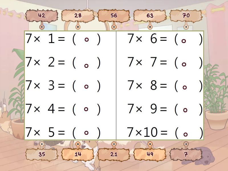 7, 14, 21, 28, 35, 42, 49, 56, 63, 70.