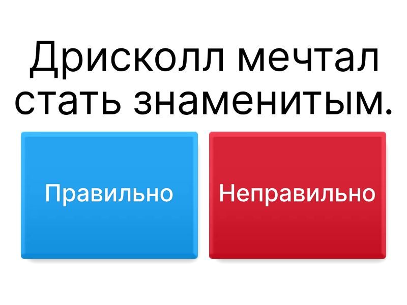 1) Дрисколл мечтал стать знаменитым. a) Правильно b) Неправильно 2) Герой посадил тысячи деревьев. a) Правильно b) Неправильно 3) Дождь уничтожил все посадки. a) Правильно b) Неправильно 4) Марс начал зеленеть a) Правильно b) Неправильно 5) Герой бросил своё дело на полпути. a) Правильно b) Неправильно