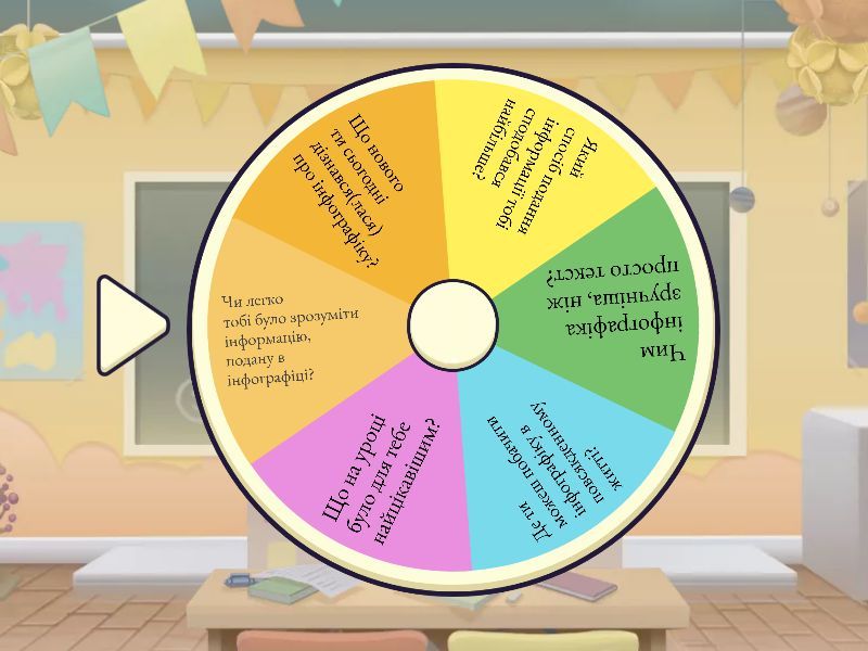 1) Що нового ти сьогодні дізнався(лася) про інфографіку? 2) Який спосіб подання інформації тобі сподобався найбільше? 3) Чим інфографіка зручніша, ніж просто текст? 4) Де ти можеш побачити інфографіку в повсякденному житті? 5) Що на уроці було для тебе найцікавішим? 6) Чи легко тобі було зрозуміти інформацію, подану в інфографіці?